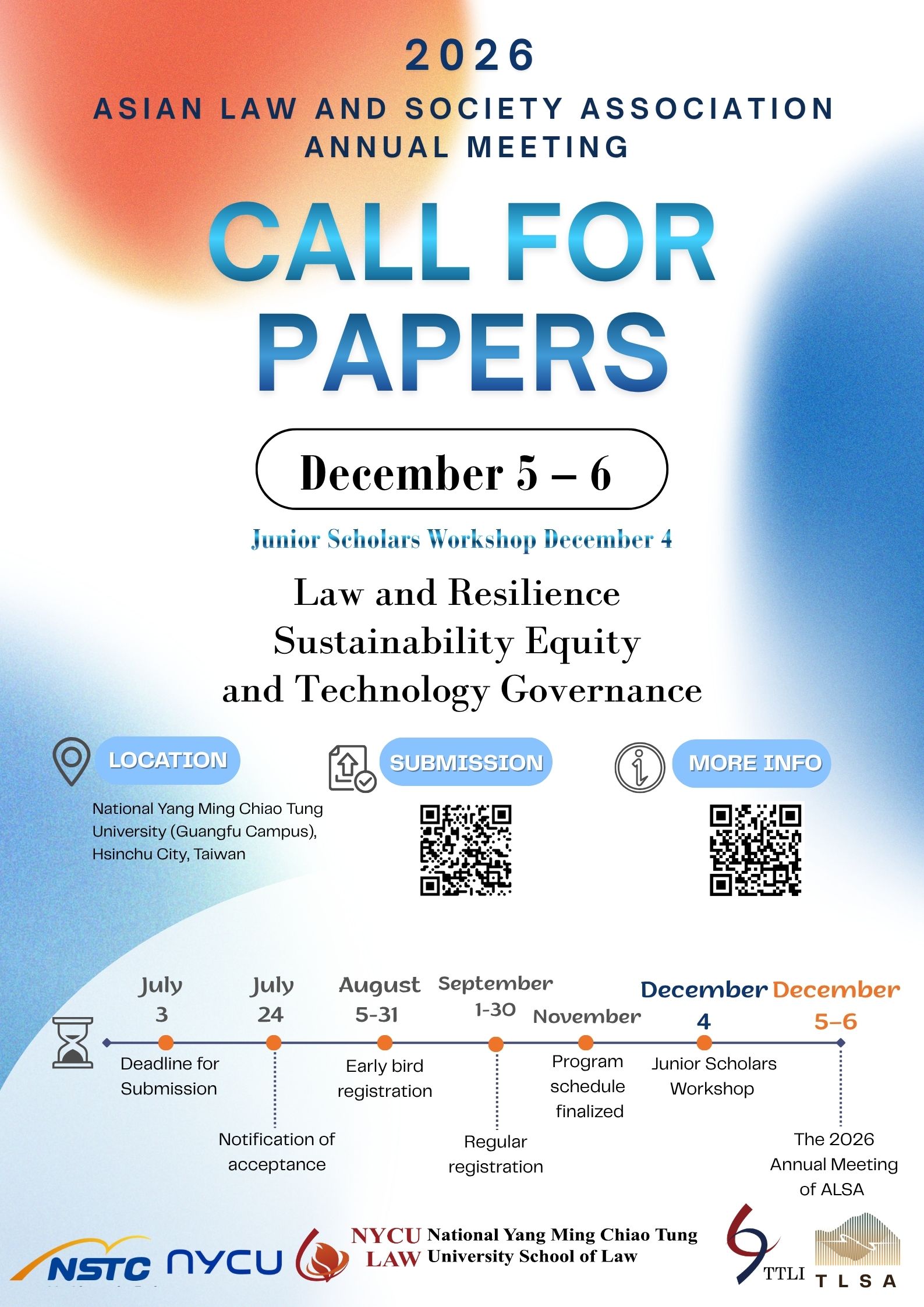 We warmly invite you to join us at the 2026 Asian Law and Society Association (ALSA) Annual Meeting, to be held from December 5 to 6, 2026, in Hsinchu City, Taiwan.
